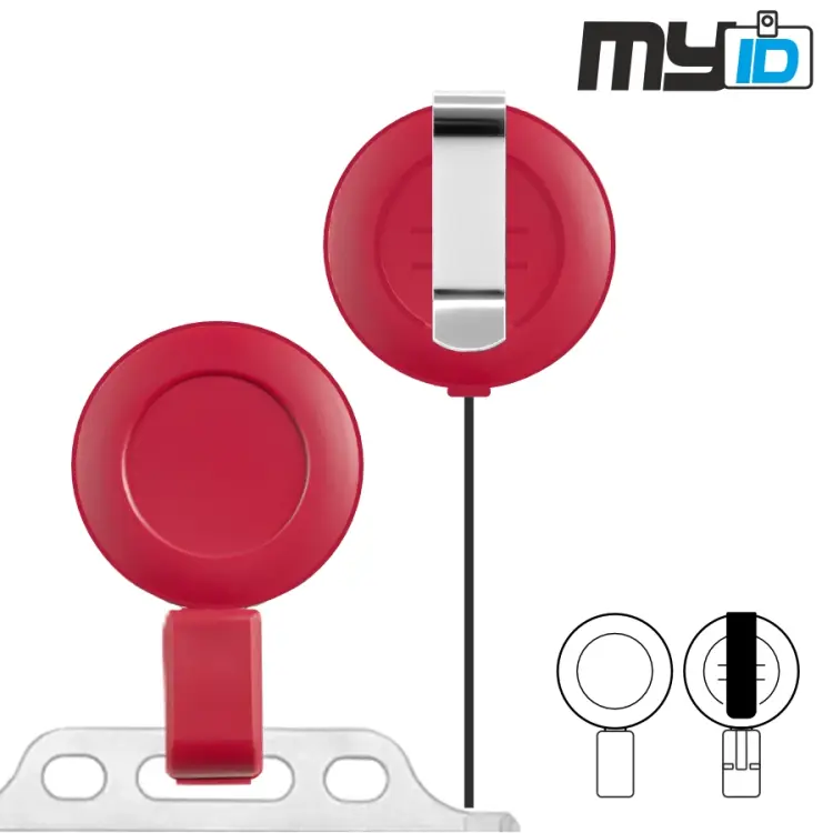 Plastový naviják Enjoy je malý, lehký a elegantní způsob, jak mít visačky a další identifikační předměty vždy po ruce, s možností jednoduchého připojení na opasek nebo jiný povrch.