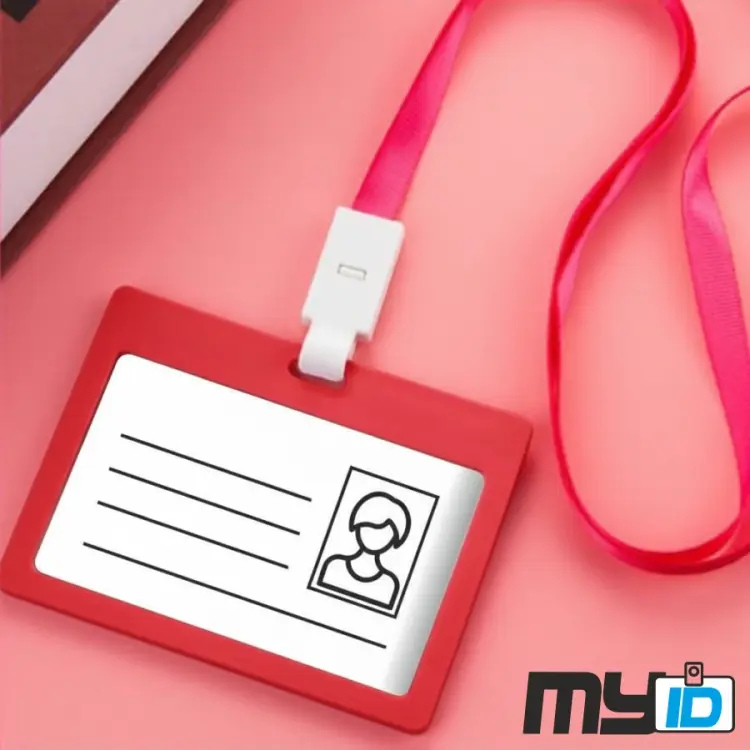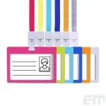 Moderní visačka (jmenovka) z kvalitního pružného plastu (PP) se šňůrkou na krk, plastovým klipem a PVC průzorem. Je ideální pro vkládání karet nebo papírových štítků a zajišťuje pohodlnou manipulaci a bezpečné uchycení.