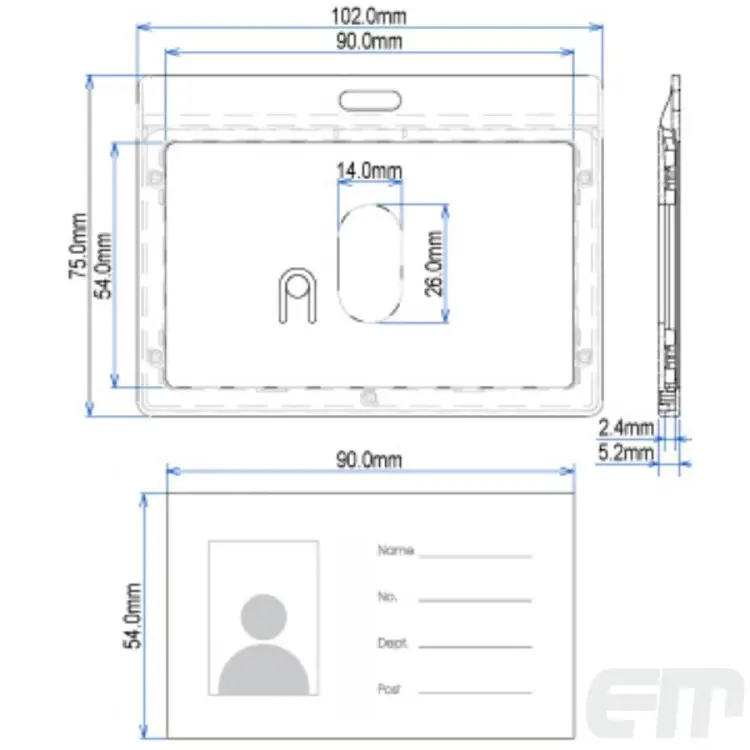 - Rozměry: 75x102x5,2mm (pro štítek 54x90x2,4mm)